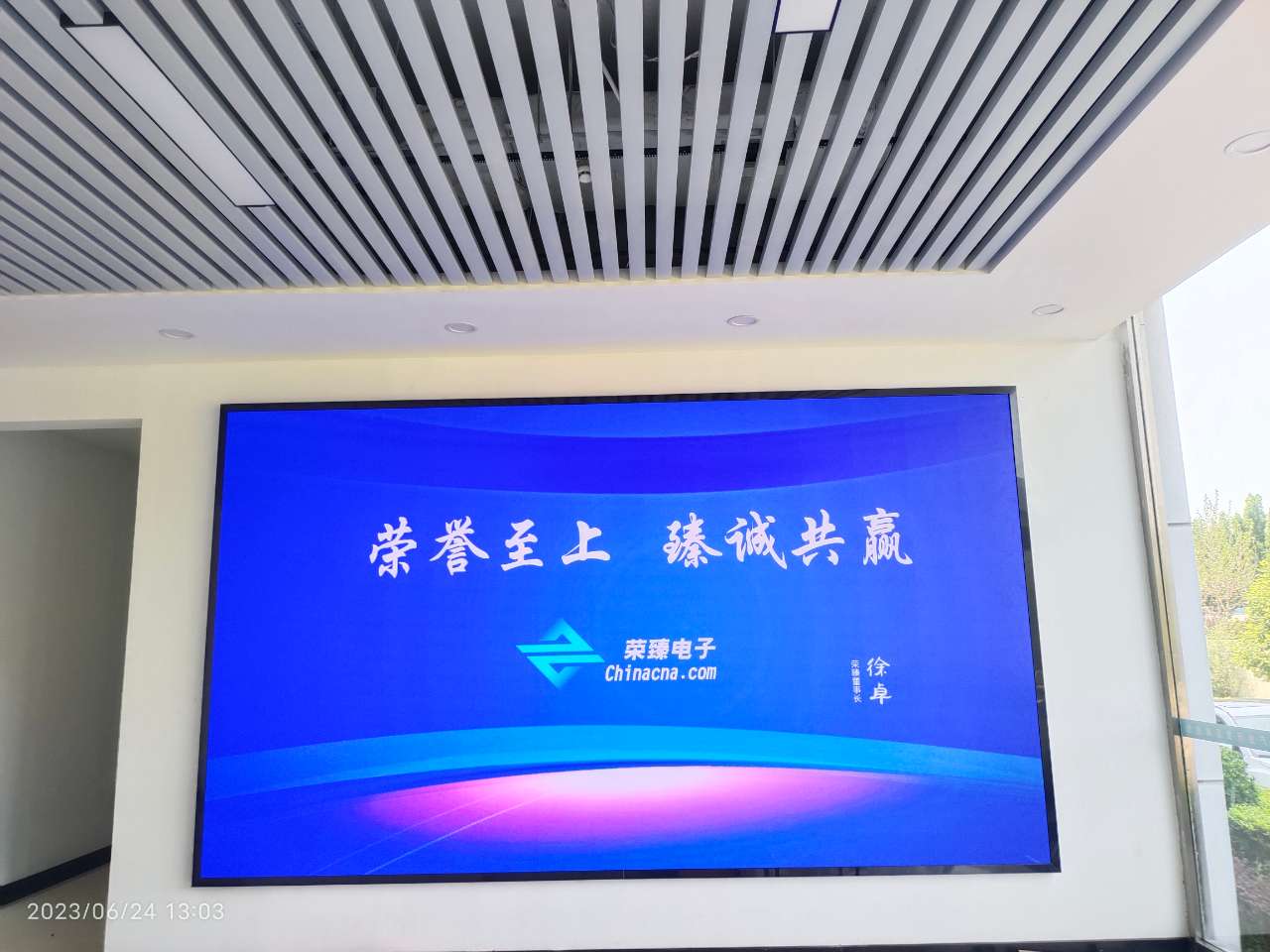 本項目案例是我公司(榮臻電子)在東北地區某公司安裝的P2.5LED小間距全彩顯示屏項目,項目的具體展示效果如下: