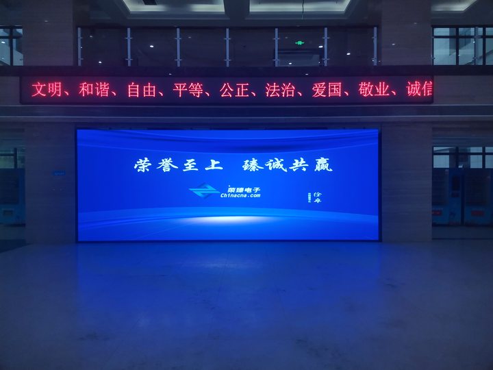 本項目案例是我公司(榮臻電子)在黑龍江某機關事務所安裝的一個P2.5小間距全彩顯示屏項目,項目的具體展示效果如下: