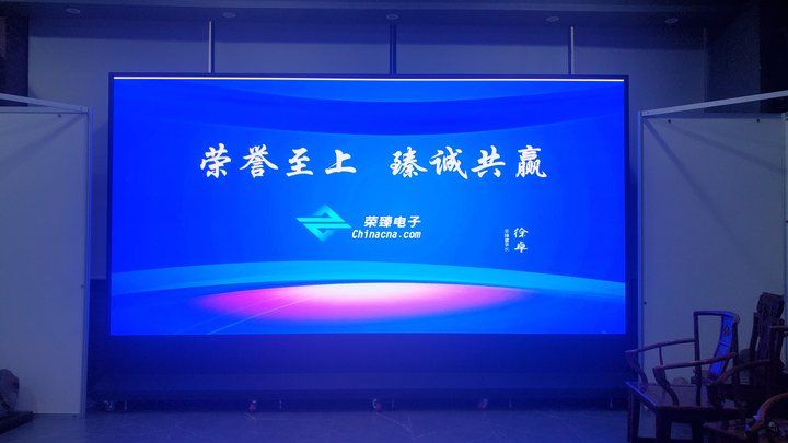 本項目案例是我公司(榮臻電子)在吉林某單位會議室安裝的一個P2.5小間距全彩顯示屏項目,項目的具體展示效果如下: